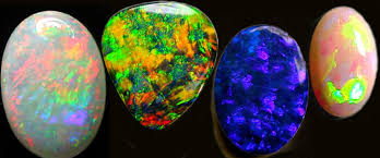 В ювелирном деле используют преимущественно так называемые благородные опалы, отличающиеся радужной игрой цвета (опалесценцией), которая характерна для полупрозрачных разновидностей. Благородный опал бывает нескольких видов: «белый» - полупрозрачный с опалесценцией в светло-голубых тонах; «черный» - с оттенками фиолетового, синего, зеленого, бордового цветов и преимущественно красными проблесками; «огненный» - желтый или красный с огненными отблесками; «царский» - с многоцветным мозаичным рисунком и опалесценцией; «джиразоль» - голубой или бесцветный с опалесценцией в красных тонах; «лехос-опал» - зеленый с игрой различных оттенков этого цвета, а также карминового.